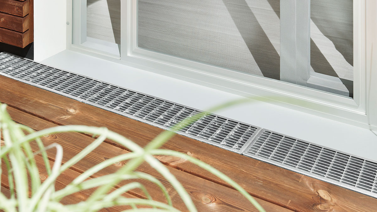 Die Lichtschachtabdeckung TERRESA wurde speziell für den Einsatz auf Holzterrassen entwickelt. Der Terrasseneinleger fungiert als Wasserablauf, der das Regenwasser in das Kiesbett unter der Terrasse ableitet. Dank der Höhe von nur 20,5 mm kann er in beinahe alle gängigen Terrassendielen eingepasst werden und ermöglicht einen barrierefreien Zugang ins Haus. TERRESA ist nicht nur flach und rutschhemmend, sondern begeistert darüber hinaus mit eleganter Optik und hält wie alle erfal Lichtschachtabdeckungen die Kellerschächte hell sowie frei von Laub, Schmutz und Insekten.