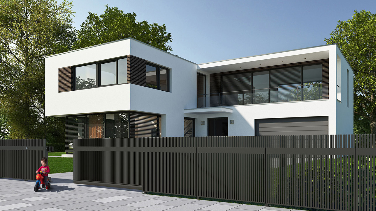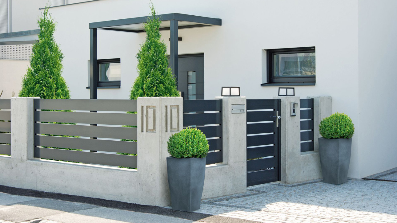 Aluminiumzäune von GUARDI erhalten Sie in zahlreichen Ausführungen mit hochwertiger Pulverbeschichtung und passendem Balkongeländer oder Gartentor.
