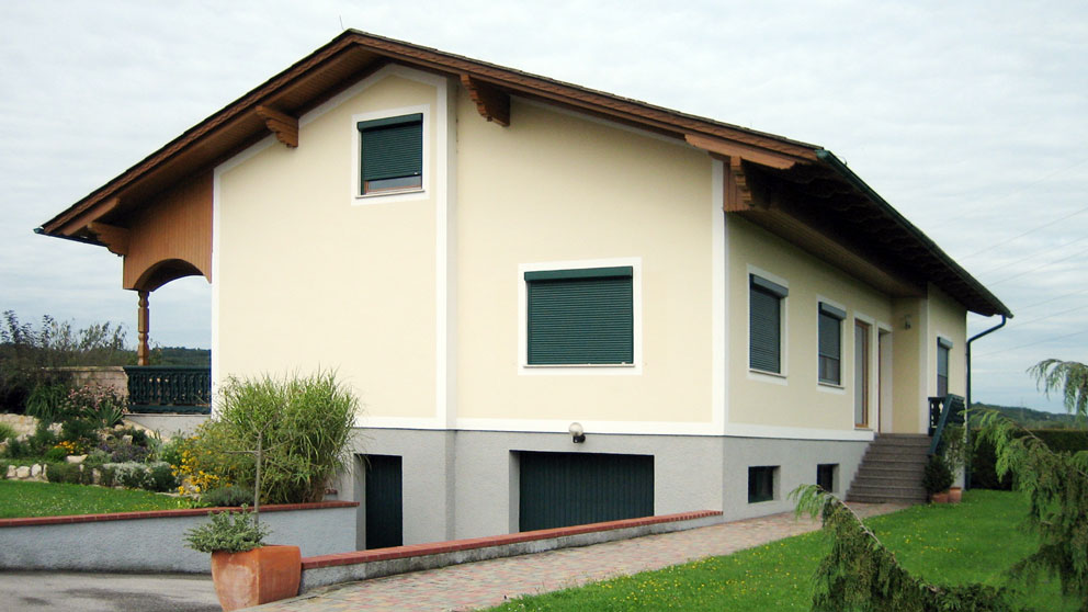 Die Montage kann in der Laibung wie auch auf dem Mauerwerk erfolgen. Mit den unterschiedlichen Kastenfarben und -formen sowie den Profilfarben können Sie die Schrägrollladen optisch auf Ihr Zuhause anpassen.